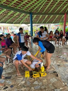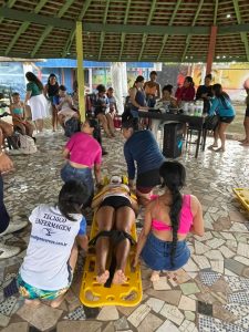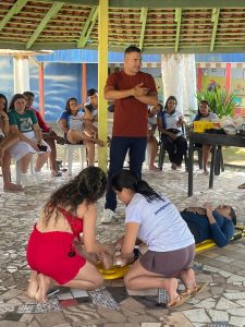 Os participantes aprenderam técnicas essenciais, como o uso de um kit básico de primeiros socorros e como acionar serviços de emergência como o SAMU (192) ou os Bombeiros (193). Essa oficina contou com teoria e prática, com demonstrações e simulações.
